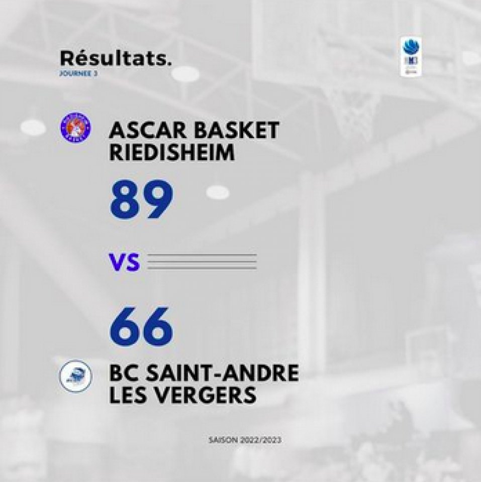 Des espoirs rapidement douchés en 2e mi-temps. Pourtant les Riedisheimois étaient revenus des vestiaires en espérant renverser la situation, mais après quelques tentatives de relance de la part d’Arnaud Halbwachs ou Mawuli Vanoukia, les Franciliens reprenaient rapidement la direction des opérations, grâce à une réussite impressionnante voire insolente des joueurs en sortie de banc, qui au final ont été tout aussi efficaces que ceux du cinq de base, à l’image de Samuel Ahovi (16 pts) ou Jean Cort (11 pts).